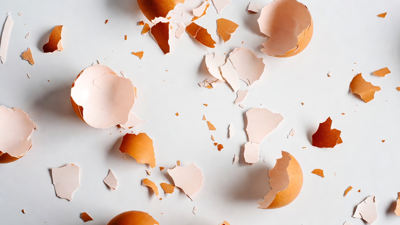 Broken Egg Shells on White Background