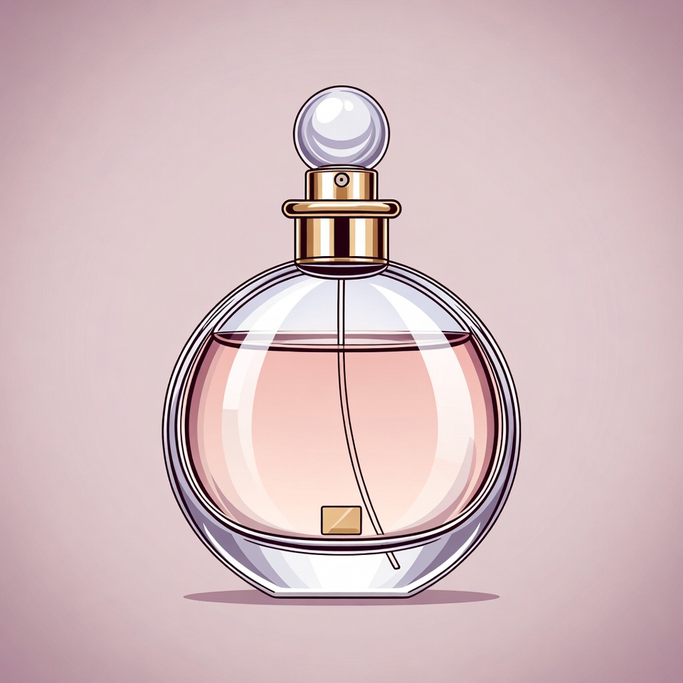 atomizer, beauty product, clipart, cosmetic, elegant design, fragrance, glass bottle, gold cap, illustration, isolated background, luxury perfume, perfume, pink background, pink liquid, pink perfume, scent bottle, spray bottle, vector art, white ball, perfume bottle