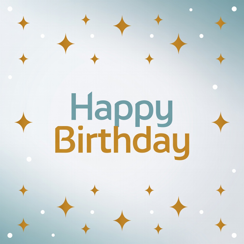 banner, birthday, blue background, card, celebration, clipart, festive, gold stars, gradient, greeting, holiday, illustration, invitation, orange text, party, sparkles, stars, text, white dots, happy birthday