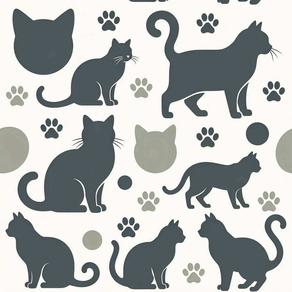 Cat Silhouettes and Paw Prints Pattern