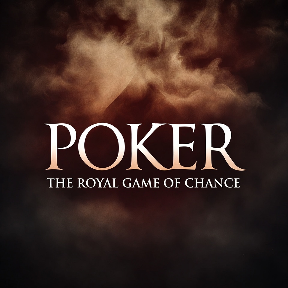 Dramatic graphic features the word 'POKER' in elegant golden letters with 'THE ROYAL GAME OF CHANCE' below. Thick brown smoke swirls around the text against a dark background. The design evokes a mysterious casino atmosphere.
