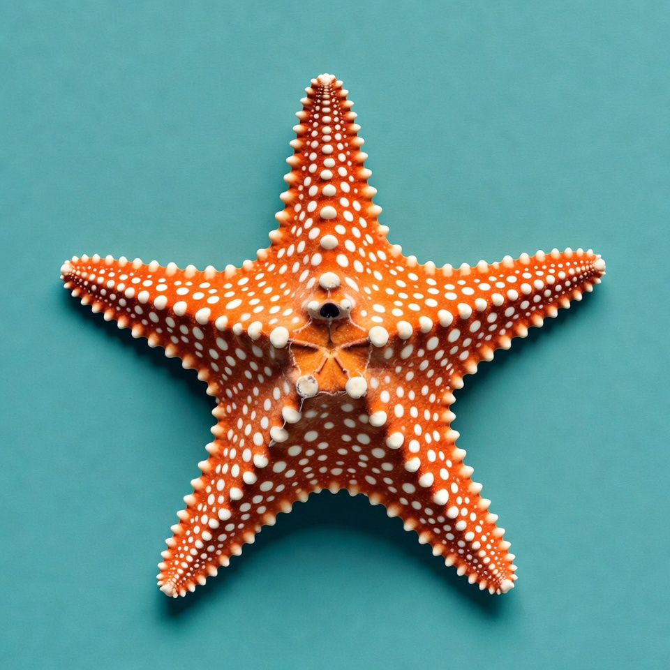 beach, blue background, five arms, isolated, marine animal, nature, ocean creature, orange starfish, sea star, shell, spiny starfish, star-shaped, textured, turquoise background, underwater, vibrant orange, white dots, wildlife, starfish