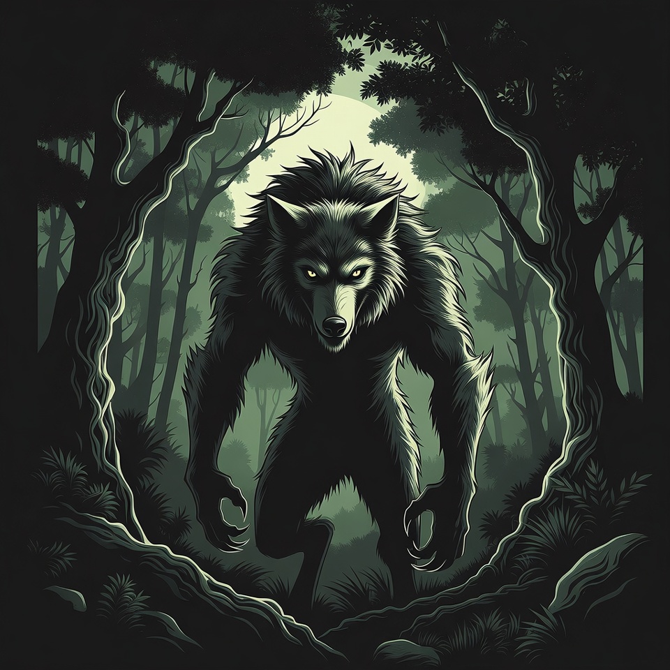 Howling Werewolf in Dark Forest