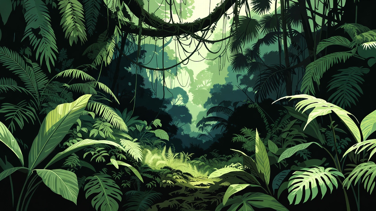 Lush Jungle with Vines and Ferns