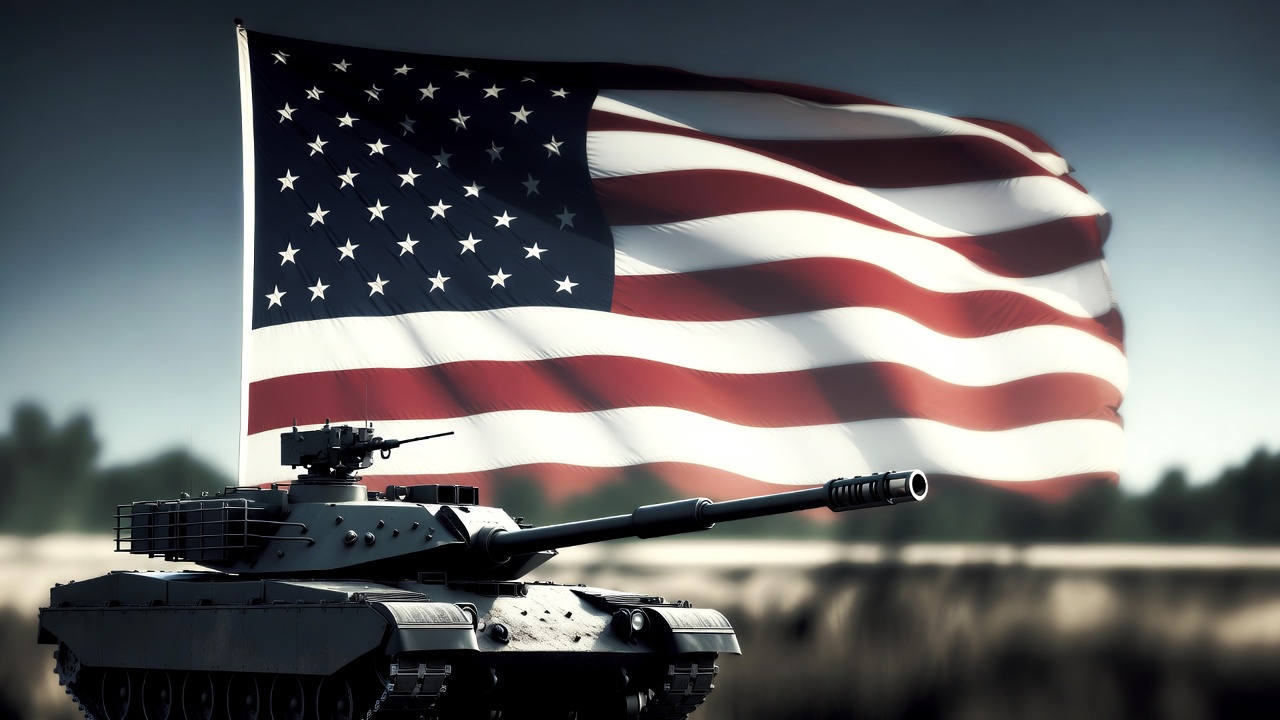 US Flag and Military Tank