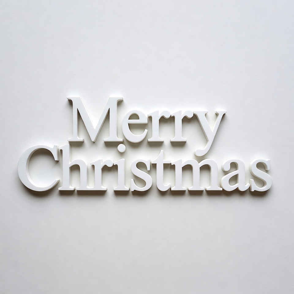 3D text, Christmas, Christmas decoration, bold font, festive message, holiday greeting, isolated, text, typography, white background, white letters, Merry Christmas
