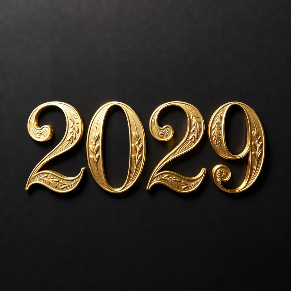 Golden 2029 Numbers on Black