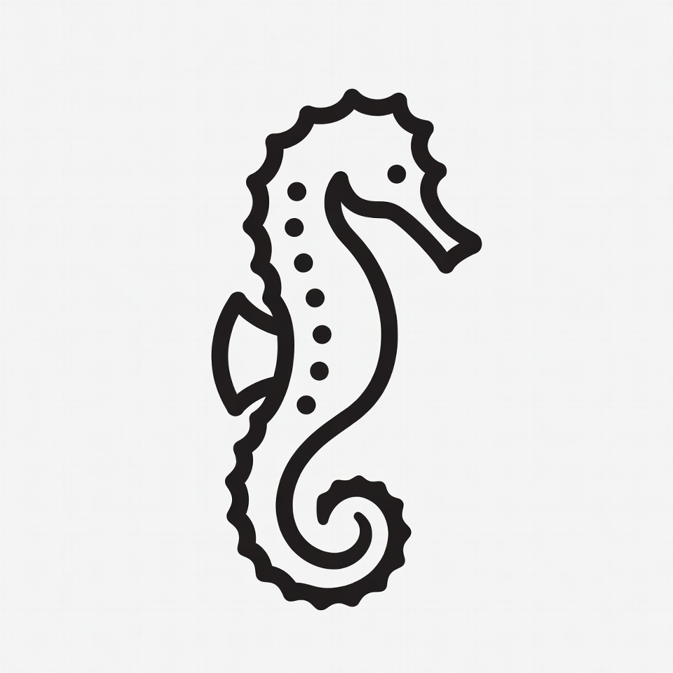 animal, black white, cartoon, clipart, doodle, drawing, illustration, isolated background, line art, marine, ocean, outline, sea creature, vector, seahorse