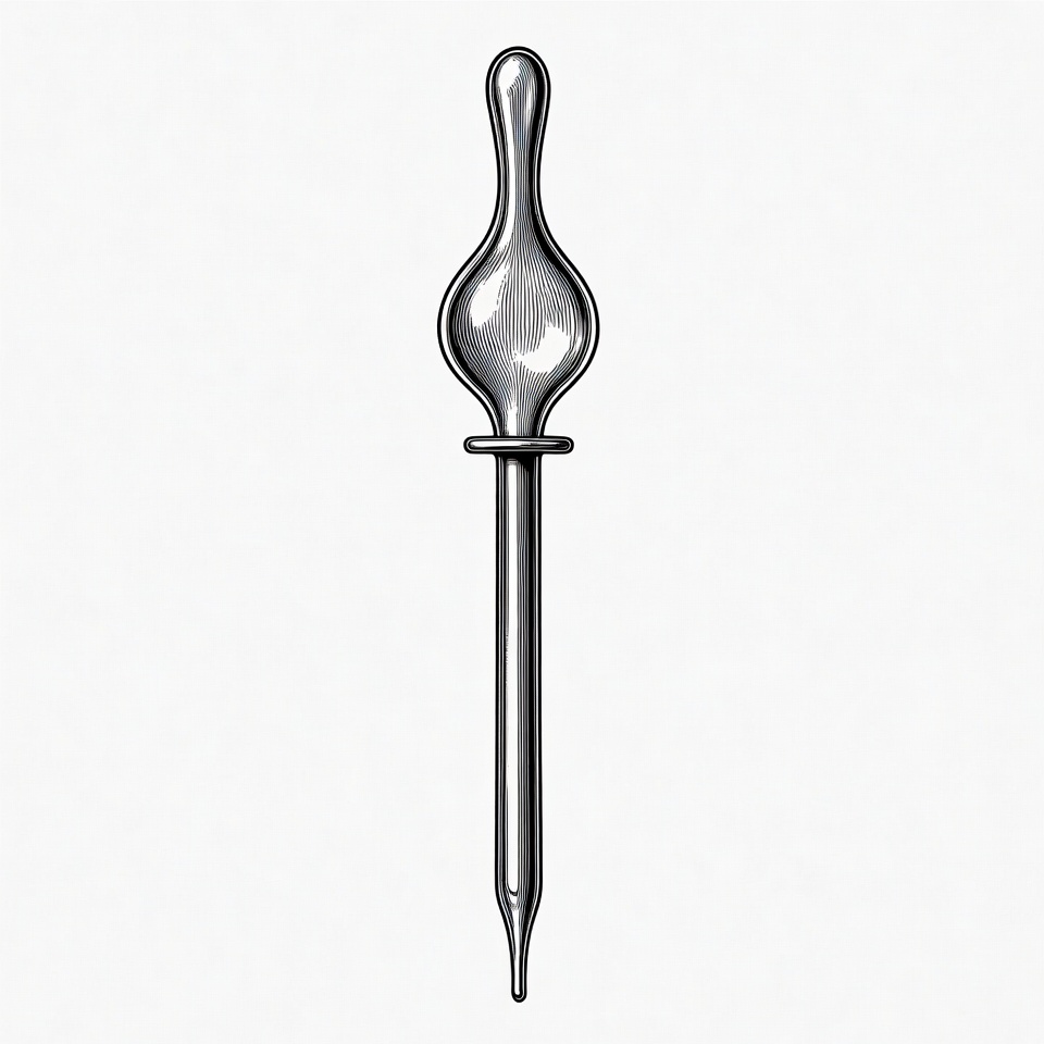 bulb, clipart, dropper, eyedropper, ink illustration, isolated background, laboratory dropper, line art, medical tool, metallic dropper, pipette, silver, silver dropper, tapered stem, medicine dropper