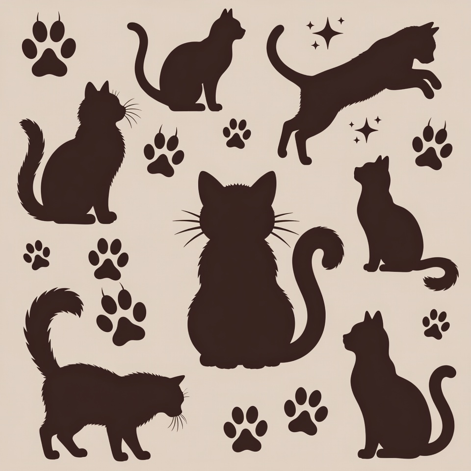 Cat Silhouettes with Paw Prints