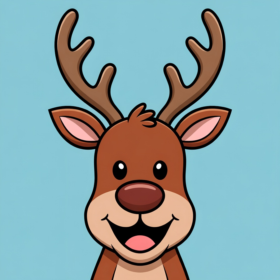 Cartoon Reindeer Smiling on Blue Background