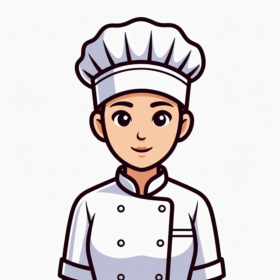 Asian, anime style, cartoon, chef hat, chef uniform, clipart, cook, cute, drawing, face, female chef, happy, hat, illustration, isolated background, kitchen, portrait, smiling, uniform, vector, white background, woman, chef