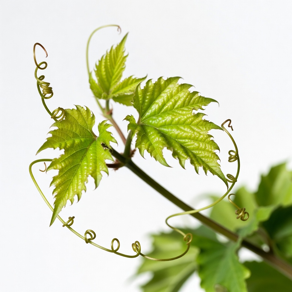 botany, curly tendrils, foliage, fresh, green leaves, isolated background, leaves, nature, plant, serrated leaves, stem, tendrils, vibrant, vine, young plant, grapevine
