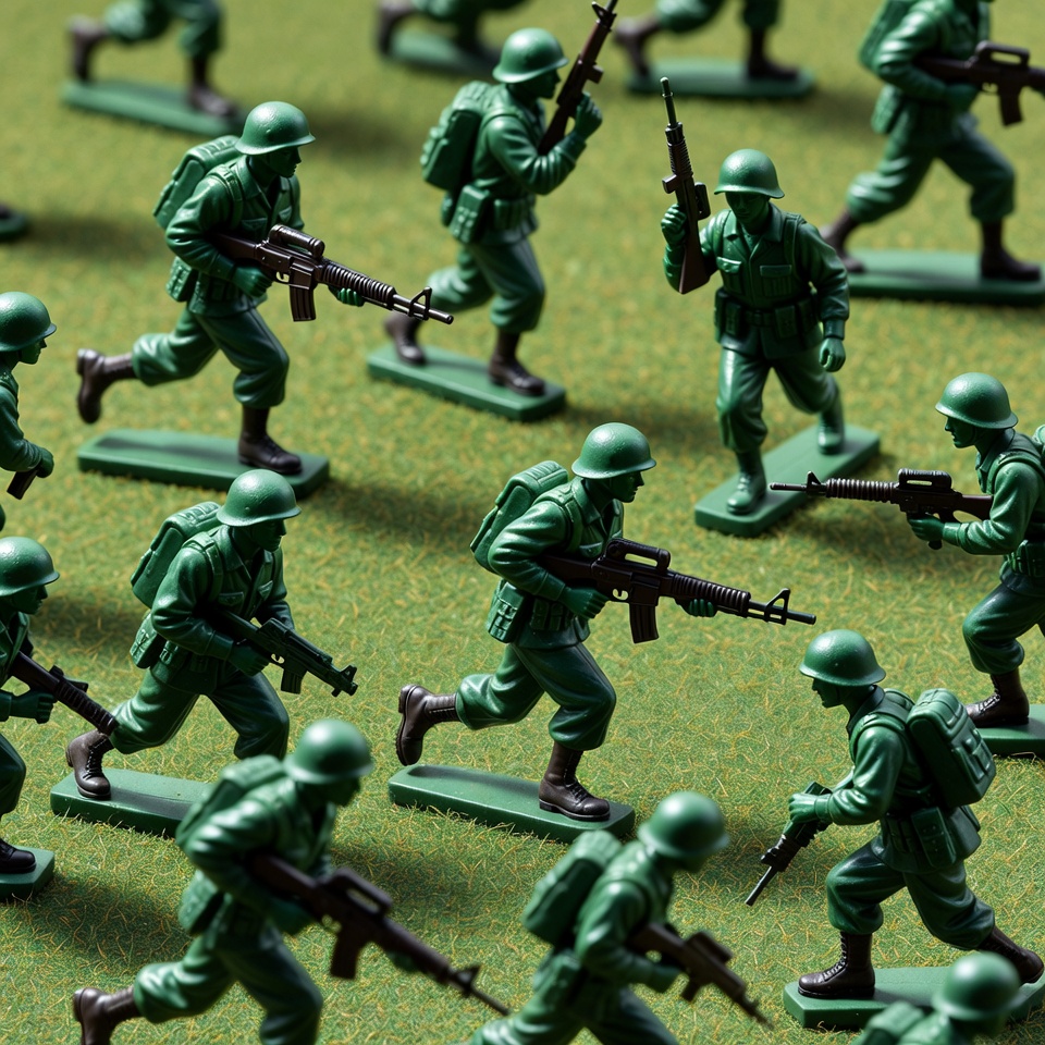 army, army men, backpacks, clipart, grass field, green uniforms, helmets, illustration, isolated background, marching, military toys, plastic soldiers, rifles, running, soldiers, toys, toy soldiers