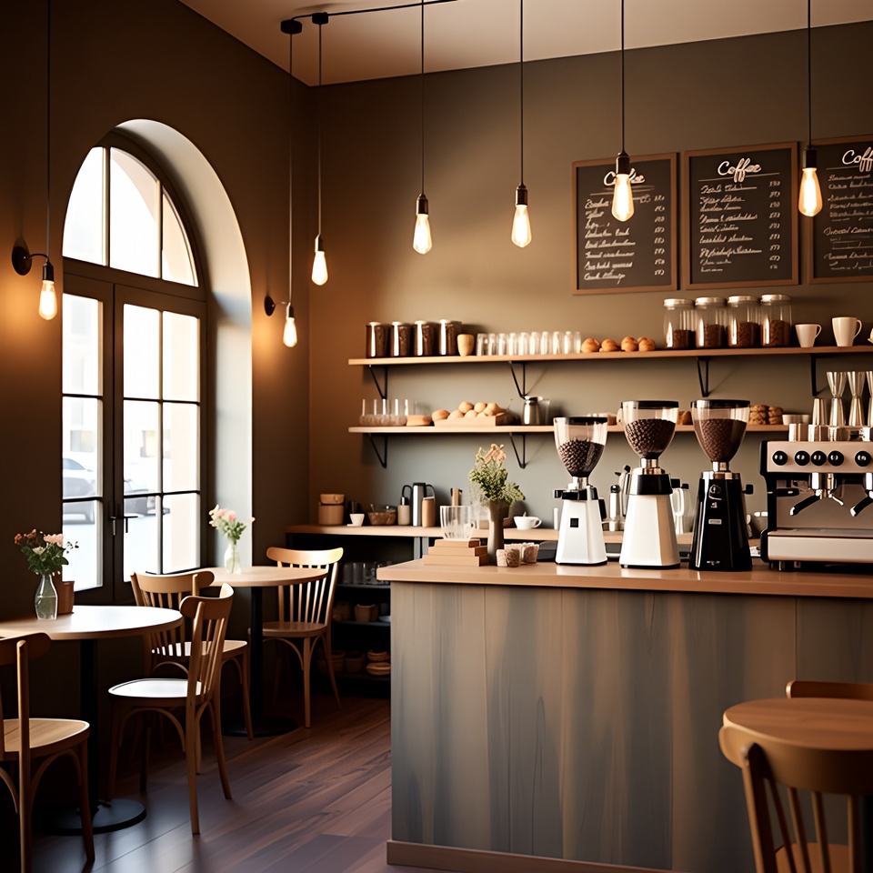 Cozy Cafe Interior with Wooden Tables