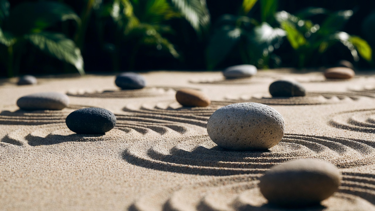 Rocks Arranged in Sand Zen Garden