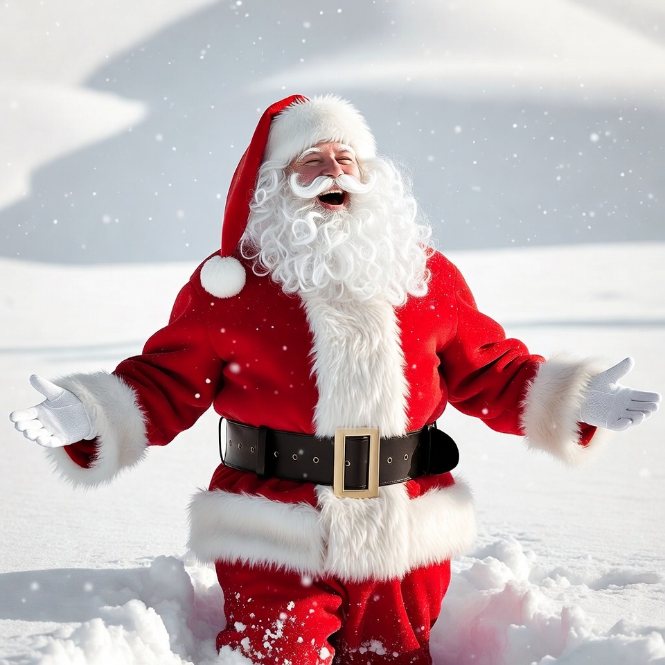 Santa Claus laughing in snowy landscape