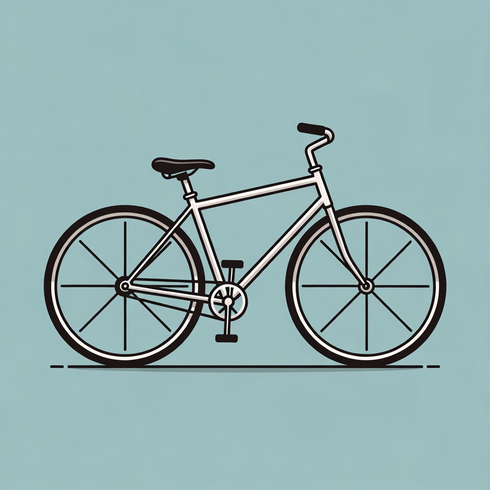 bike, clipart, cycling, drawing, flat design, graphic, handlebars, icon, illustration, isolated background, line art, minimalist, pedals, saddle, simple bike, transport, vector, wheels, white bicycle, bicycle