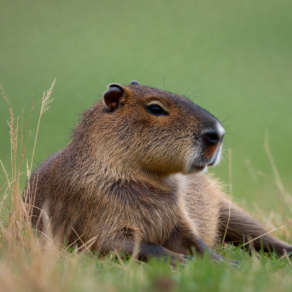 animal, brown fur, capybara lying, fluffy fur, grass, green field, isolated background, large rodent, nature, outdoors, reeds, rodent, tall grass, wildlife, capybara