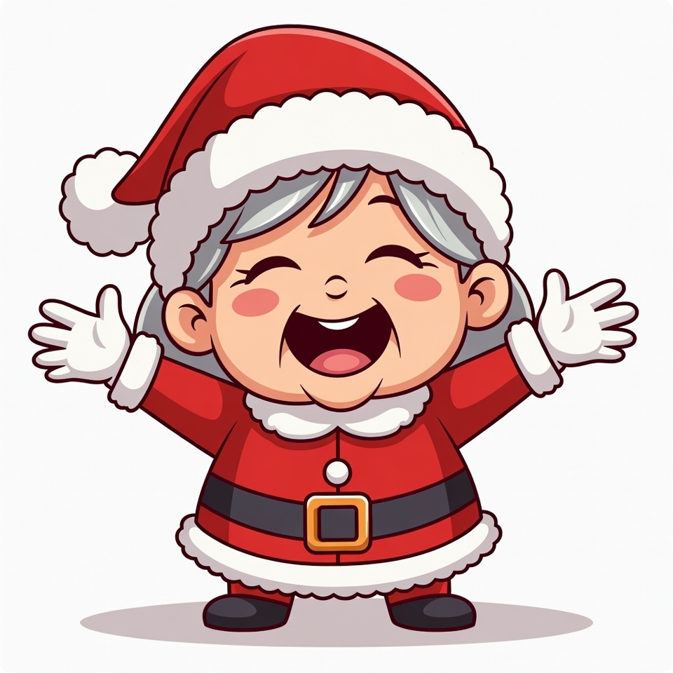 Chibi Grandma Santa Laughing Joyfully