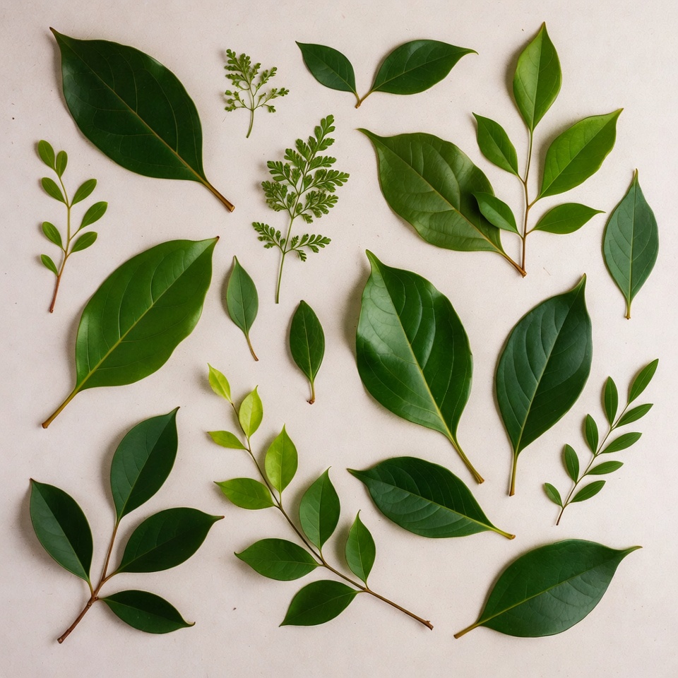botany, broad leaves, fern leaves, flat lay, foliage, fresh leaves, green foliage, herbs, isolated leaves, leaf arrangement, leaf collection, leaf shapes, leaves, nature, oval leaves, plant leaves, plants, vibrant green, white background, green leaves