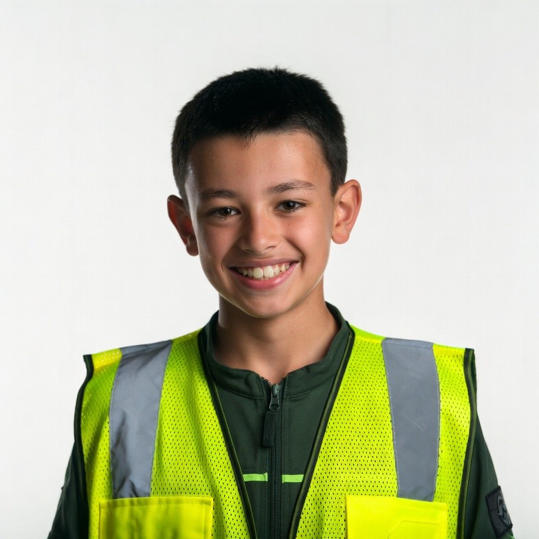 Asian boy in yellow safety vest