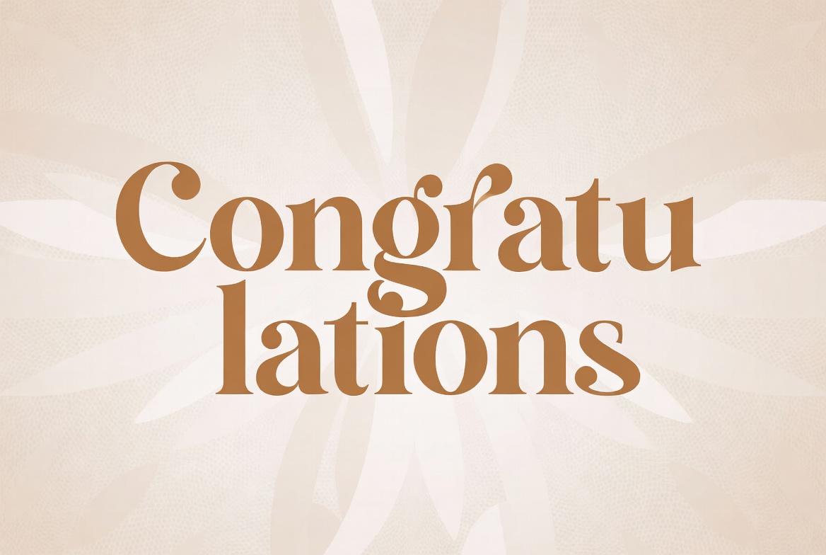 achievement, award, banner, beige background, brown text, card, celebration, clipart, decorative, design, elegant font, floral background, gradient, graphic, illustration, invitation, isolated background, starburst, text, congratulations