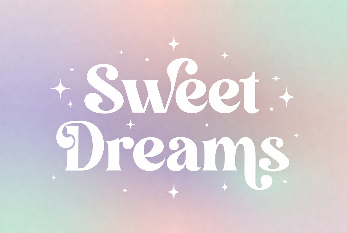 cursive letters, dreamy, graphic, illustration, isolated background, pastel background, pink gradient, purple, quote, sparkles, stars, teal, text, typography, white font, sweet dreams