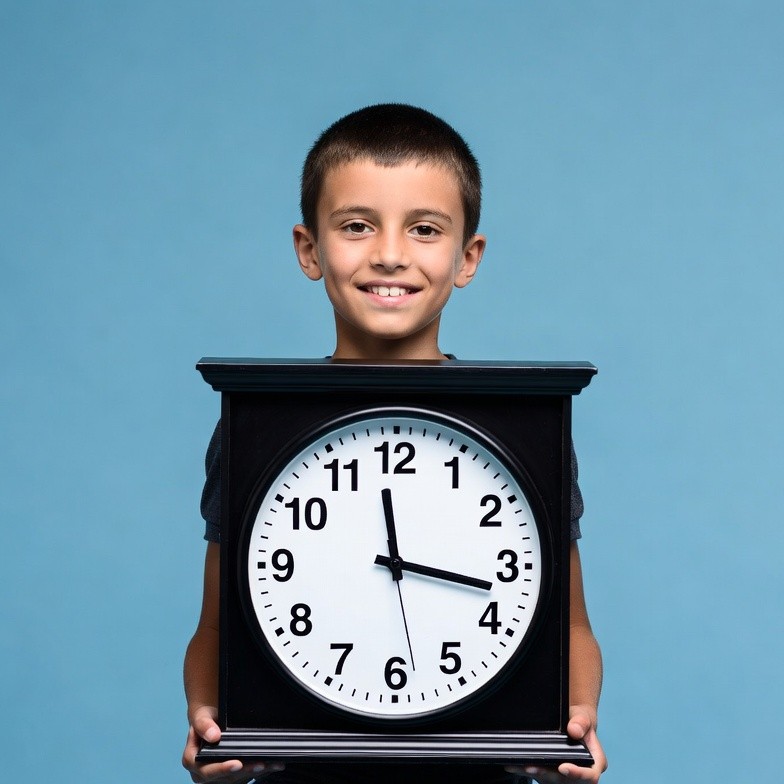 Boy holding large clock