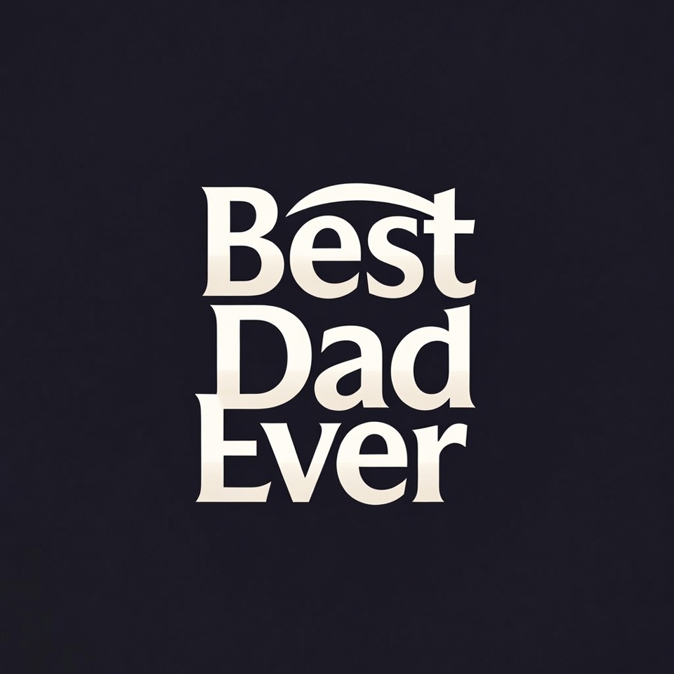Bold white text reading 'Best Dad Ever' is displayed prominently on a solid dark background. The lettering features a stylish, curved design with a glossy metallic effect. The phrase is stacked vertically for emphasis.