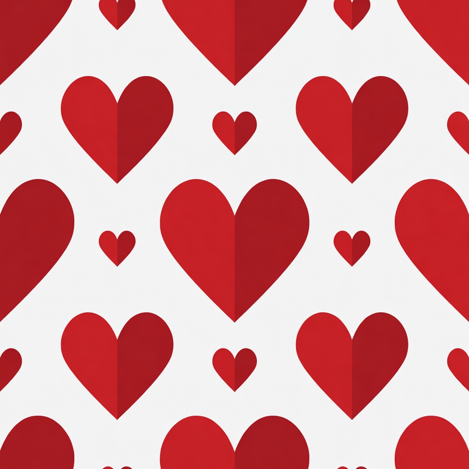 Red Hearts Pattern on White Background