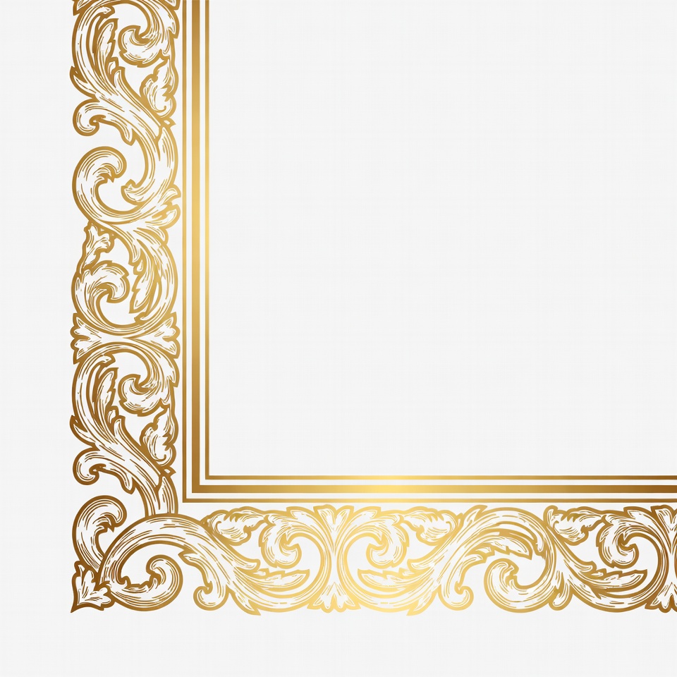 An intricate golden frame border features elaborate floral and scrollwork designs. The ornate border surrounds a large empty white space. The gold elements have a shiny, metallic finish on a transparent background.