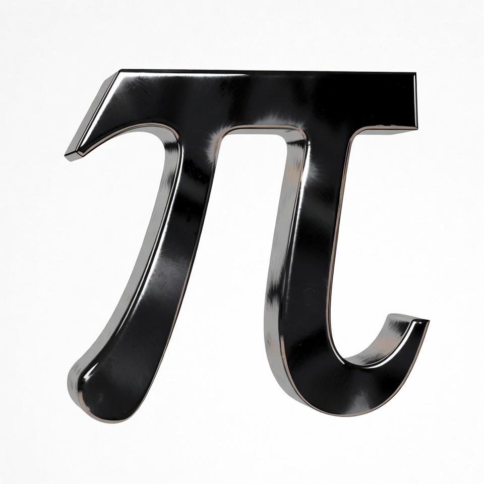 A glossy black pi symbol (Ï€) with a metallic sheen is centered against a white background. The symbol features curved legs and a smooth, reflective surface. It appears as a 3D rendered graphic isolated on a plain backdrop.