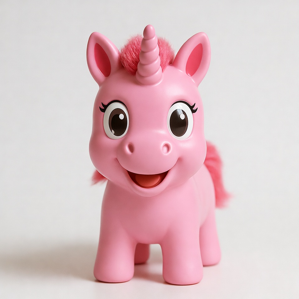 animal toy, big eyes, cartoon unicorn, cute unicorn, fantasy animal, fluffy mane, happy face, isolated background, pink unicorn, plastic toy, smiling unicorn, toy, unicorn