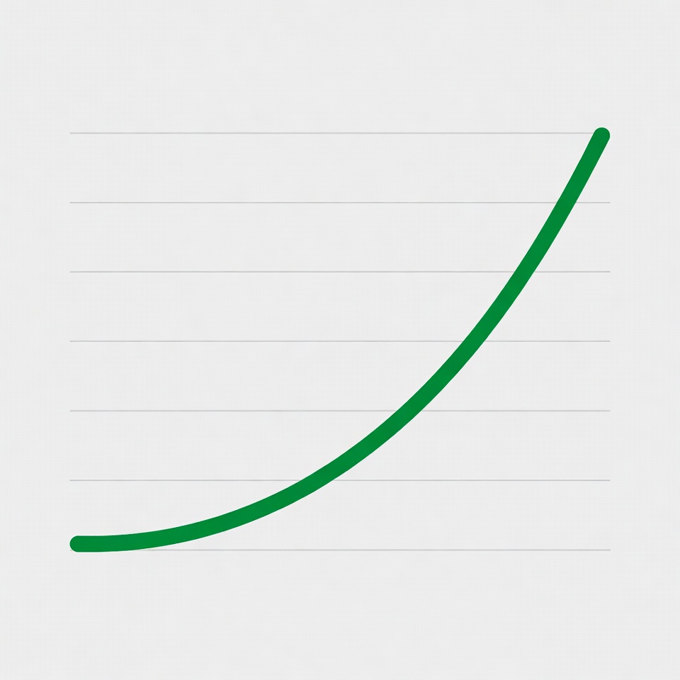 A simple line graph features a solid green line trending sharply upward from left to right. The graph is plotted on a light gray background with faint gray grid lines. No data labels or axes markings are visible.