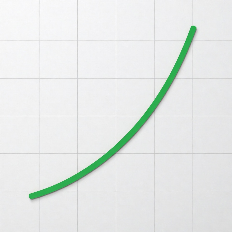 A thick green arrow curves upward on a white grid background. The arrow starts at the bottom left and points toward the top right. It is isolated against the graph paper-like grid.