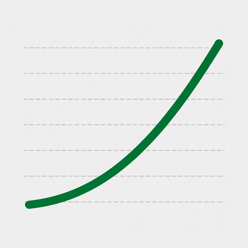 A simple line graph features a solid green line rising sharply from left to right against a light gray background with faint gray grid lines. The line starts low near the bottom-left and ends high near the top-right. No axes labels or additional data points are visible.