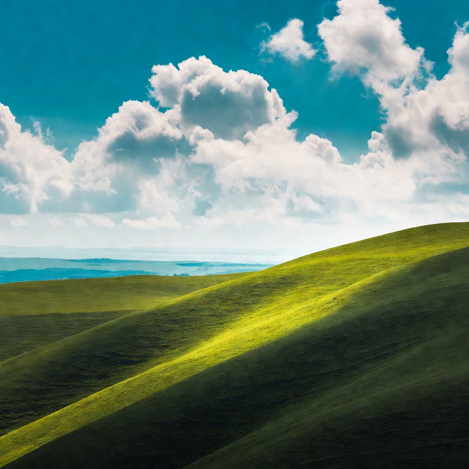 Rolling Green Hills Under Blue Sky