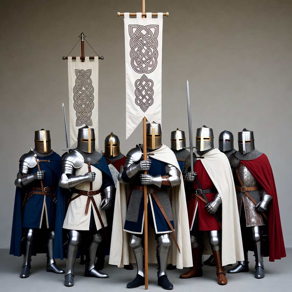 Knights in Armor Holding Celtic Banners