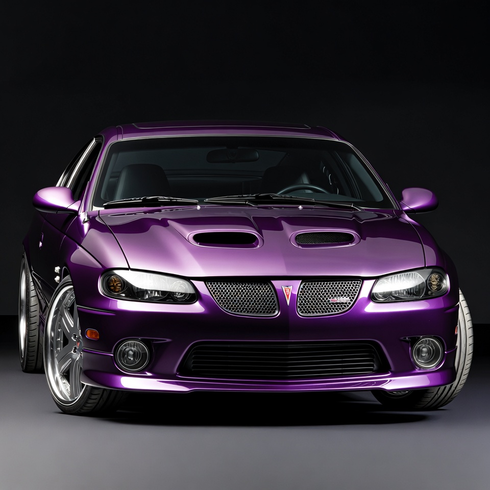 Pontiac grille, Pontiac logo, alloy wheels, automotive, car front, coupe, custom car, dark background, front view, glossy paint, headlights, hood scoops, low angle, muscle car, performance car, purple car, purple vehicle, shiny car, sports car, Pontiac Sunfire