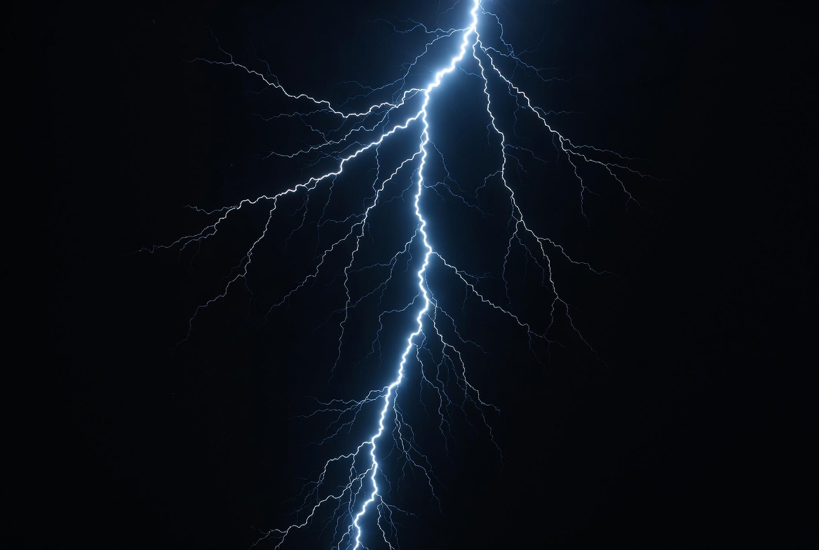 Bright Lightning Bolt Striking Dark Sky