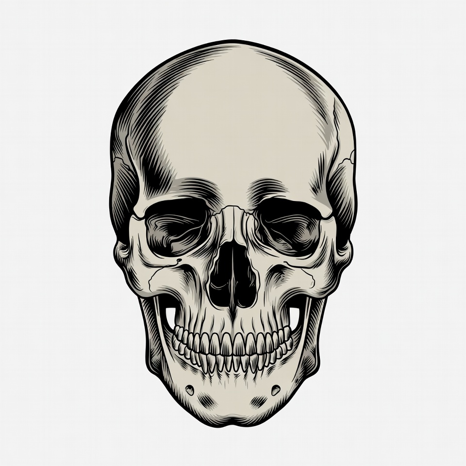 Halloween, anatomy, bones, death, detailed skull, grinning skull, human skull, illustration, ink drawing, isolated background, line art, realistic skull, skeleton, white background, skull