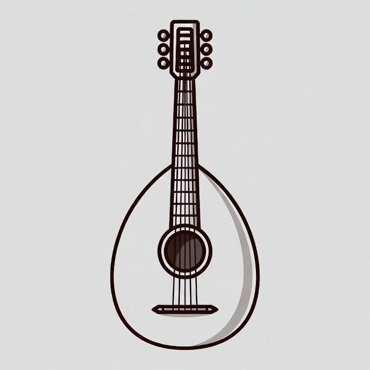 arabic instrument, clipart, illustration, isolated background, line art, lute, musical instrument, neck, outline drawing, pear shaped, string instrument, strings, traditional music, tuning pegs, vector art, oud