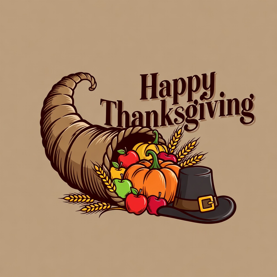 Happy Thanksgiving Cornucopia Illustration