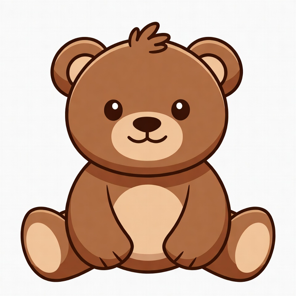 adorable bear, baby bear, big eyes, brown bear, cartoon bear, chibi bear, clipart, cute bear, fluffy bear, illustration, isolated background, kawaii bear, plush toy, sitting bear, smiling bear, vector bear, teddy bear