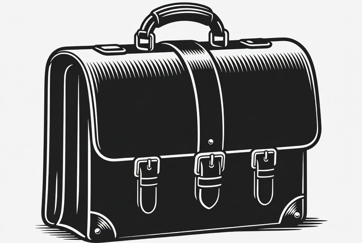 black briefcase, buckles, business accessory, business bag, clipart, engraving style, handle, illustration, isolated background, leather briefcase, line art, luggage, sketch, vector art, briefcase