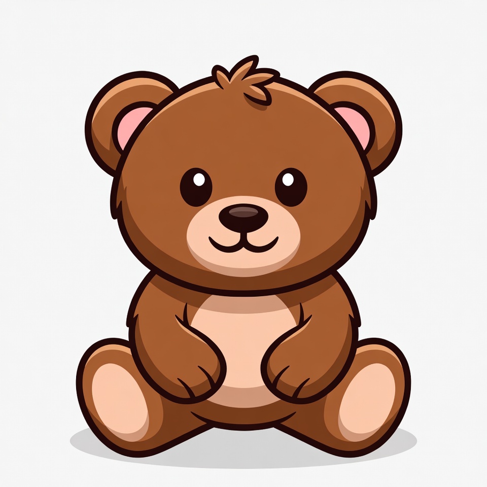 adorable bear, animal illustration, baby bear, big eyes, brown bear, cartoon bear, clipart, cute bear, fluffy bear, illustration, isolated background, kawaii bear, plush bear, sitting bear, smiling bear, vector bear, teddy bear