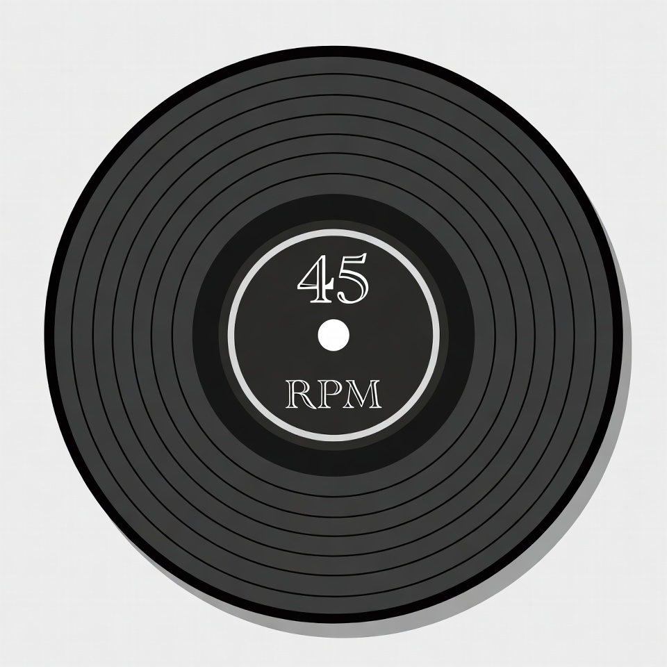 45 RPM, 45 record, RPM label, black vinyl, clipart, disc, illustration, isolated background, music, record player, single, vintage record, vinyl record