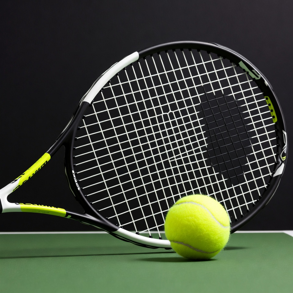 Tennis racket and ball on court