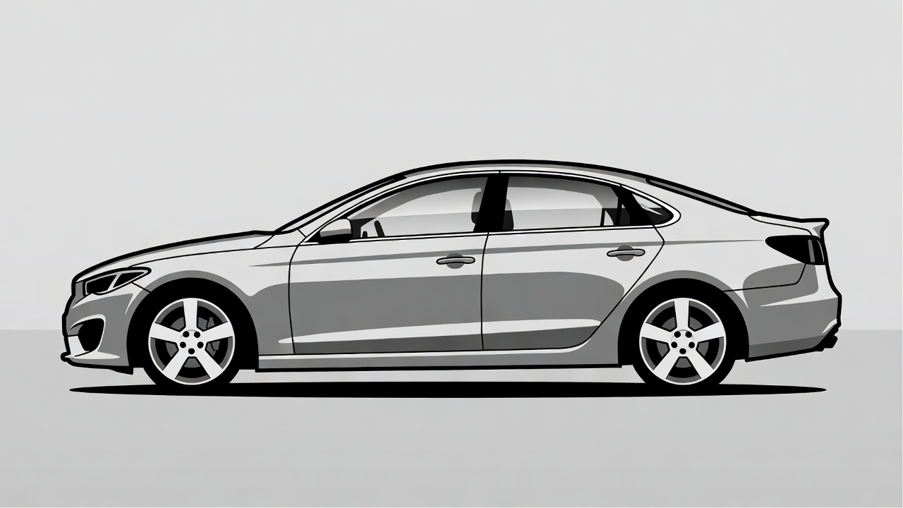 Silver sedan side view illustration